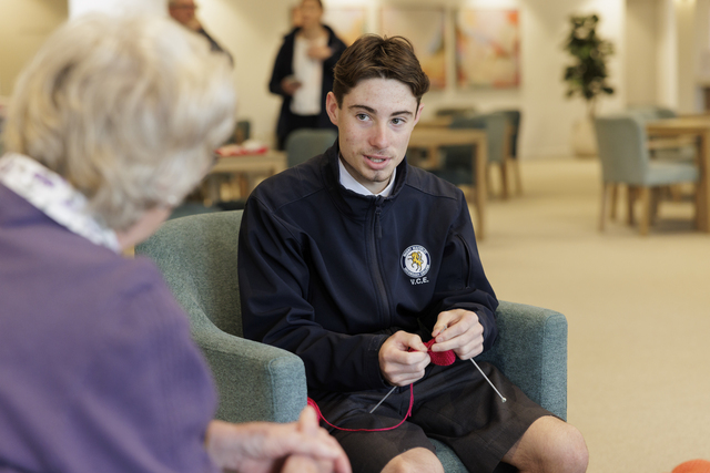 Close-knit friendships have been woven between retirees at Aveo’s Fountain Court in Melbourne’s east and local high school students who share stories and laughter while learning the timeless art of knitting.