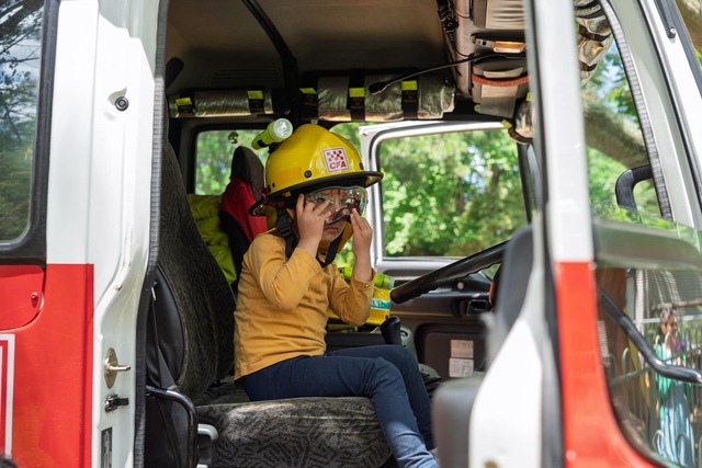 The kids had the chance to “drive” the truck, hop on the back, and learn all about the hoses and storage compartments.