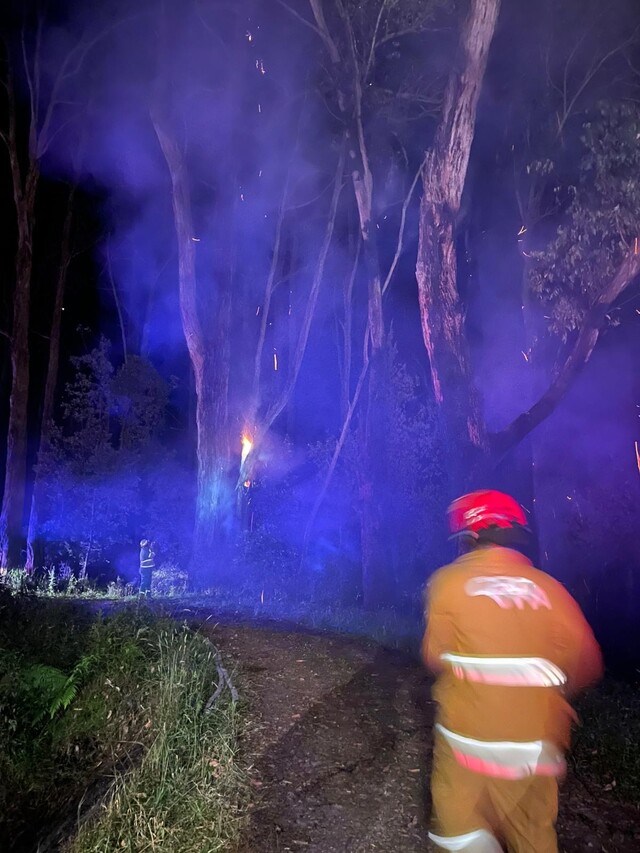 A total of five tankers and five slip-ons were used to put out the fire, and units from Forest Fire Management Victoria (FFMV) also arrived on scene to chop down trees which were out of reach.