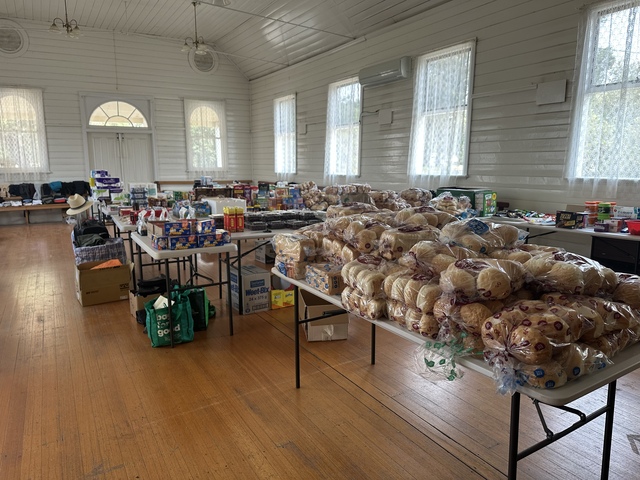 In a single week, Meat Inn Place, supported by the broader community, was able to provide 700 slabs of water plus other drinks, 500 cases of snack foods and non-perishable supplies, 1000 bread rolls and 400 loaves of bread, 100 cases of medical and hygiene supplies, 100 bags of clothing and bedding and around $5000 worth of fencing supplies.